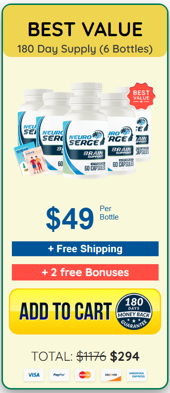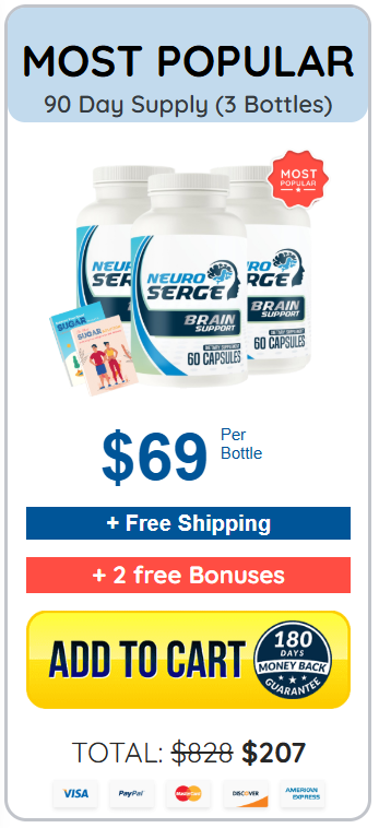 At this moment you can order Neuro Serge supplement for 75% OFF + FREE Shipping. This is a Limited-Time Offer and it won’t be available for long.
